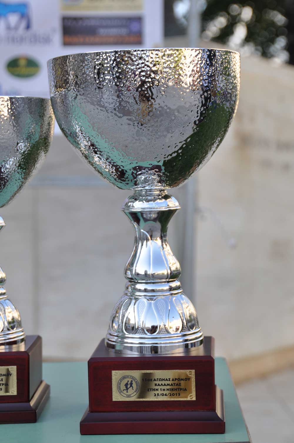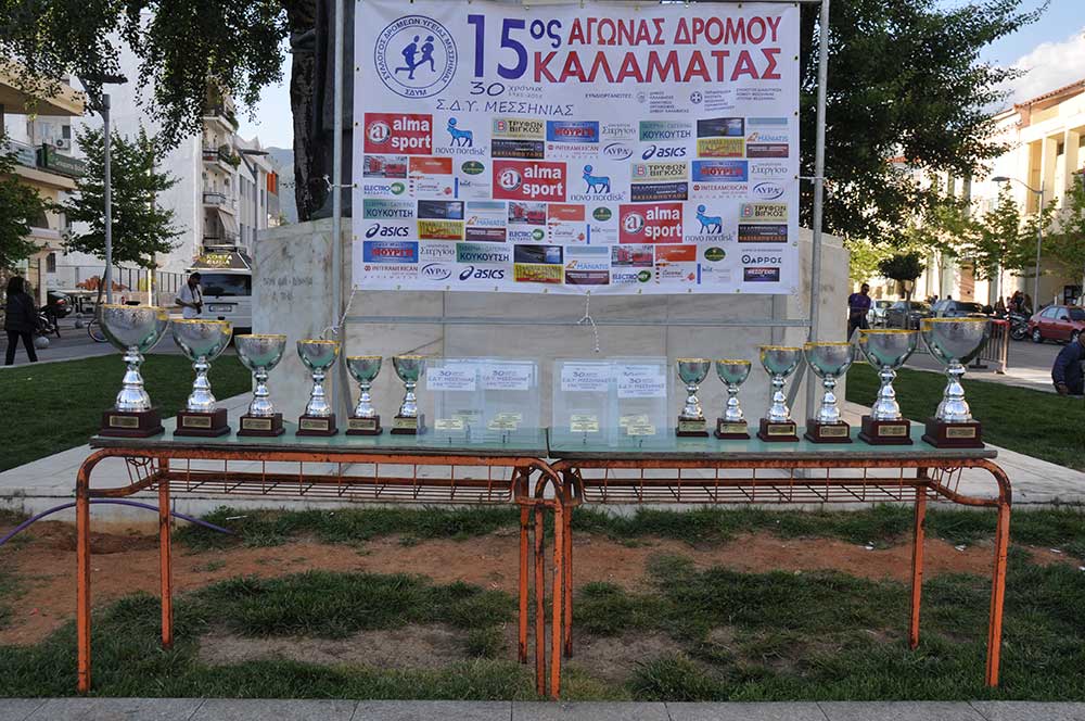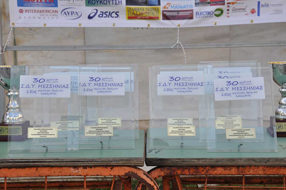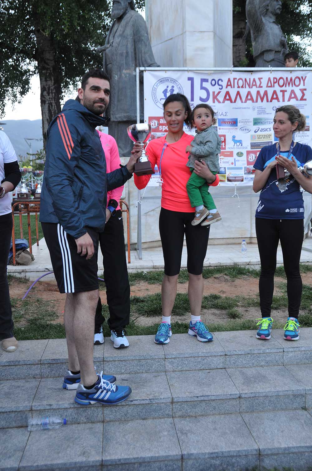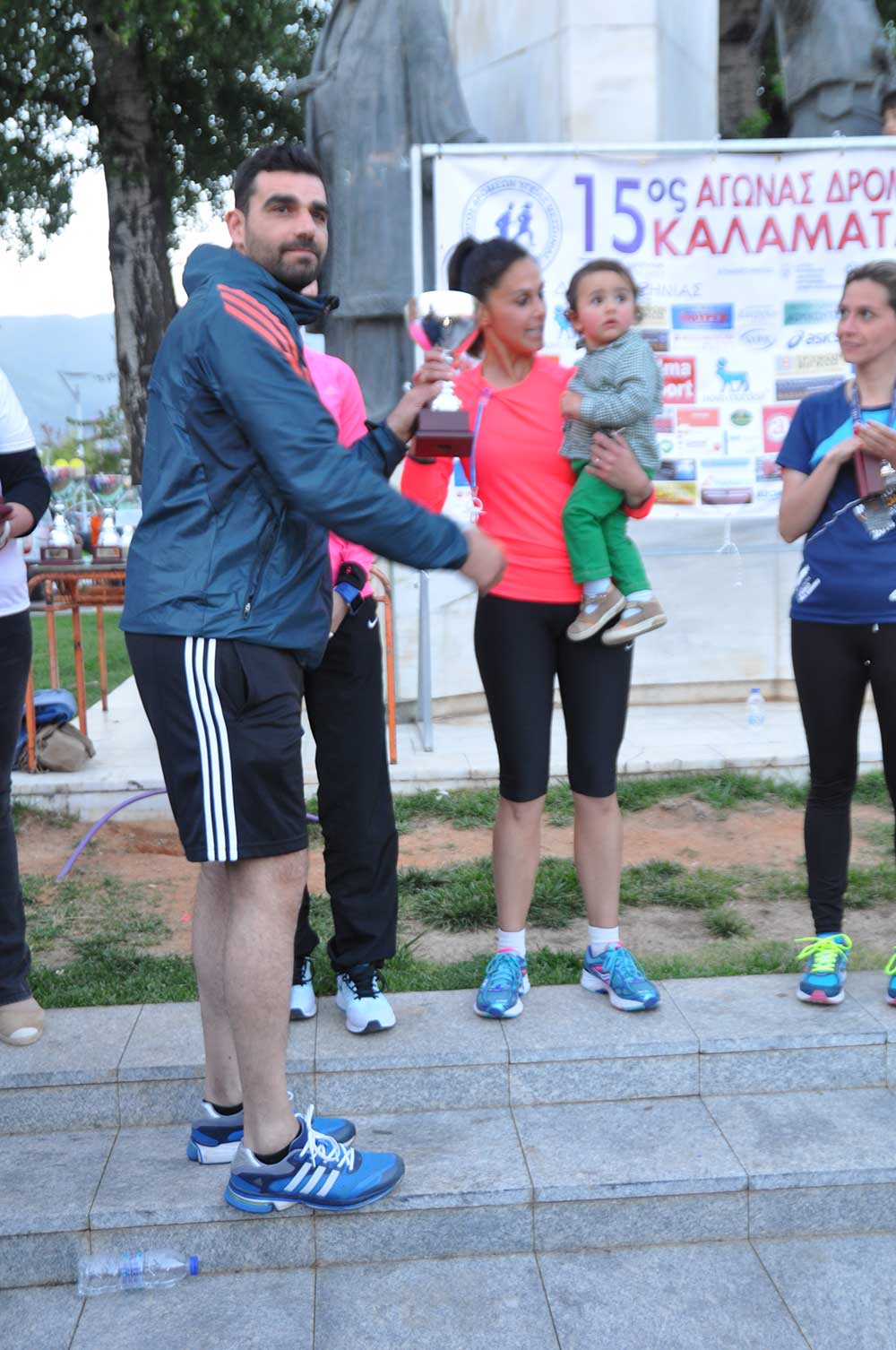 Οι διοργανωτές βράβευσαν τους πρώτους έξι σε άνδρες και γυναίκες και παράλληλα έδωσαν τιμητικές πλακέτες σε συλλόγους, χορηγούς και εθελοντές, καθώς και στον παλιό πρωταθλητή Κερκ Λαζαρίδη. Βραβεύτηκε ακόμα και ο 33χρονος Νίκος Λαμπρούλης από τη Θεσσαλονίκη, άτομο με διαβήτη, πατέρας 3χρονου αγοριού, ο οποίος παραδίδει μαθήματα ζωής, έχοντας κάνει 4 μαραθώνιους σε 12 μήνες και φυσικά έτρεξε και στον αγώνα της Καλαμάτας.
