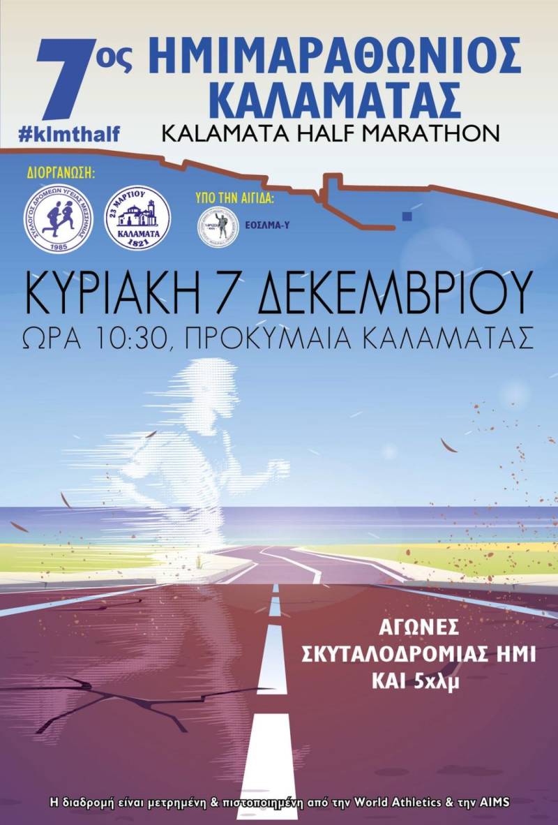 Ο Δήμος Καλαμάτας και ο Σύλλογος Δρομέων Υγείας Μεσσηνίας συνδιοργανώνουν μία άρτια αθλητική εκδήλωση με παράλληλες διαδρομές, ανοιχτές σε όλους: ημιμαραθώνιο 21,1 χλμ., σκυταλοδρομία 2Χ21,1 χλμ. και αγώνα δρόμου 5 χλμ. Η διαδρομή είναι πιστοποιημένη από τη World Athletics, επίπεδη και παραλιακή, γεγονός που την καθιστά ιδανική για ρεκόρ και υψηλές επιδόσεις.