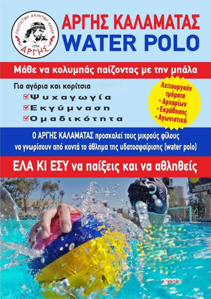Νέα αρχάρια τμήματα υδατοσφαίρισης από τον Αργη Καλαμάτας