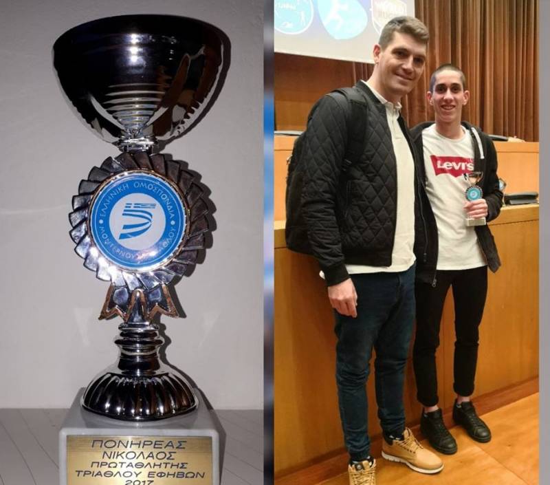 Η Ομοσπονδία βράβευσε τον πρωταθλητή τριάθλου εφήβων του Γ.Σ. Ακρίτα Νίκο Πονηρέα