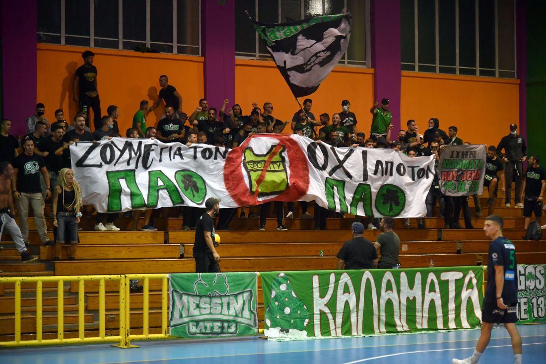 Την ιστορική "σημαία" του Παναθηναϊκού στο βόλεϊ Σωτήρη Πανταλέοντα τίμησε η Καλαμάτα ‘80 λίγο πριν την έναρξη του αγώνα της με το "τριφύλλι".