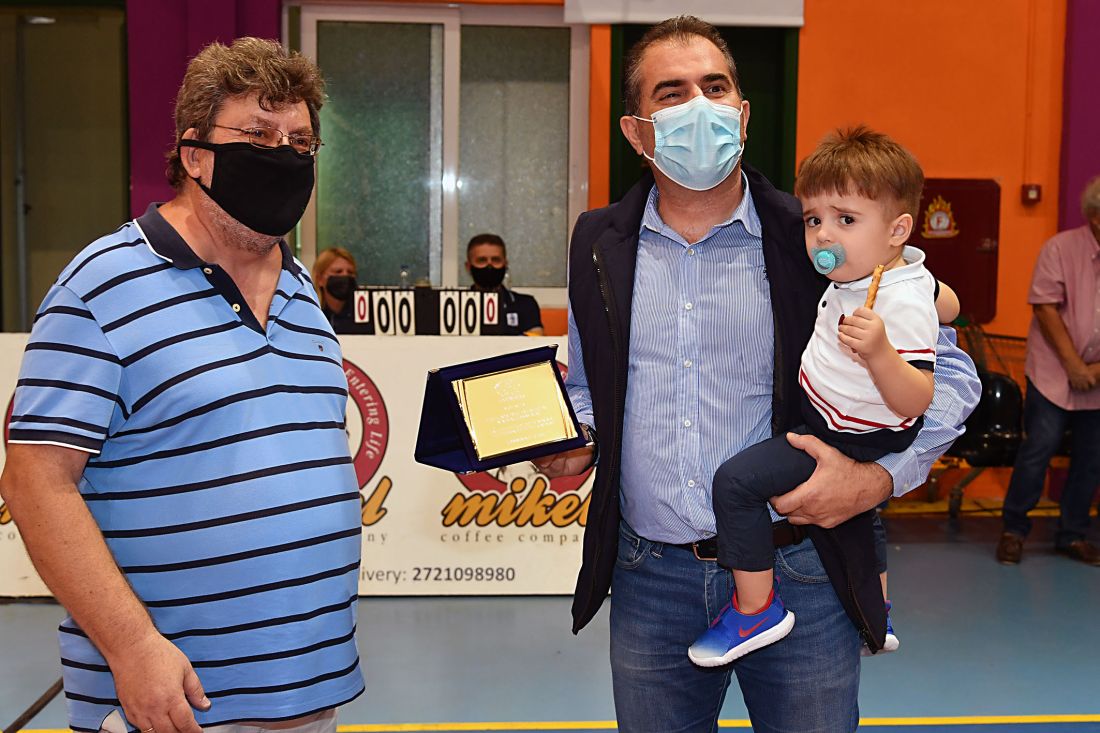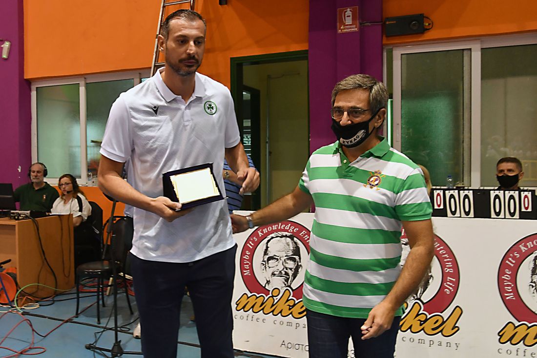 Την βράβευση στον επί χρόνια αρχηγό του Παναθηναϊκού έκανε ο Παναγιώτης Μουστάκης, ενώ προηγήθηκε η δια χειρός Κώστα Βλάση βράβευση του δημάρχου Καλαμάτας Θανάση Βασιλόπουλου για την βοήθεια, που έχει προσφέρει ο Δήμος Καλαμάτας στην ομάδα.