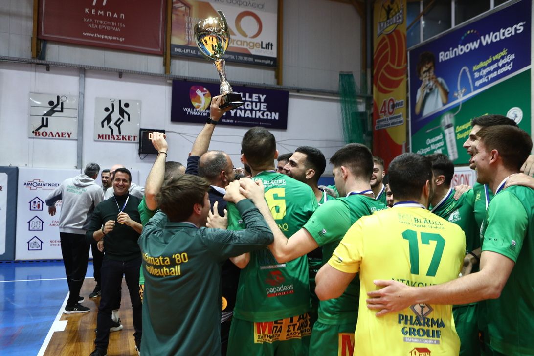 Μετά τη λήξη της αναμέτρησης πρώτος ο αρχηγός της Καλαμάτας '80 Βαγγέλης Ντάκουρης σήκωσε την κούπα του πρωταθλήματος και ακολούθησαν ξέφρενοι πανηγυρισμοί από παίκτες, τεχνικό επιτελείο, διοίκηση, αλλά και κάποιους φιλάθλους που ακολούθησαν την καλαματιανή ομάδα στον τελευταίο αγώνα της για φέτος στο Κλειστό Γυμναστήριο "Στέλιος Καλαϊτζάκης".