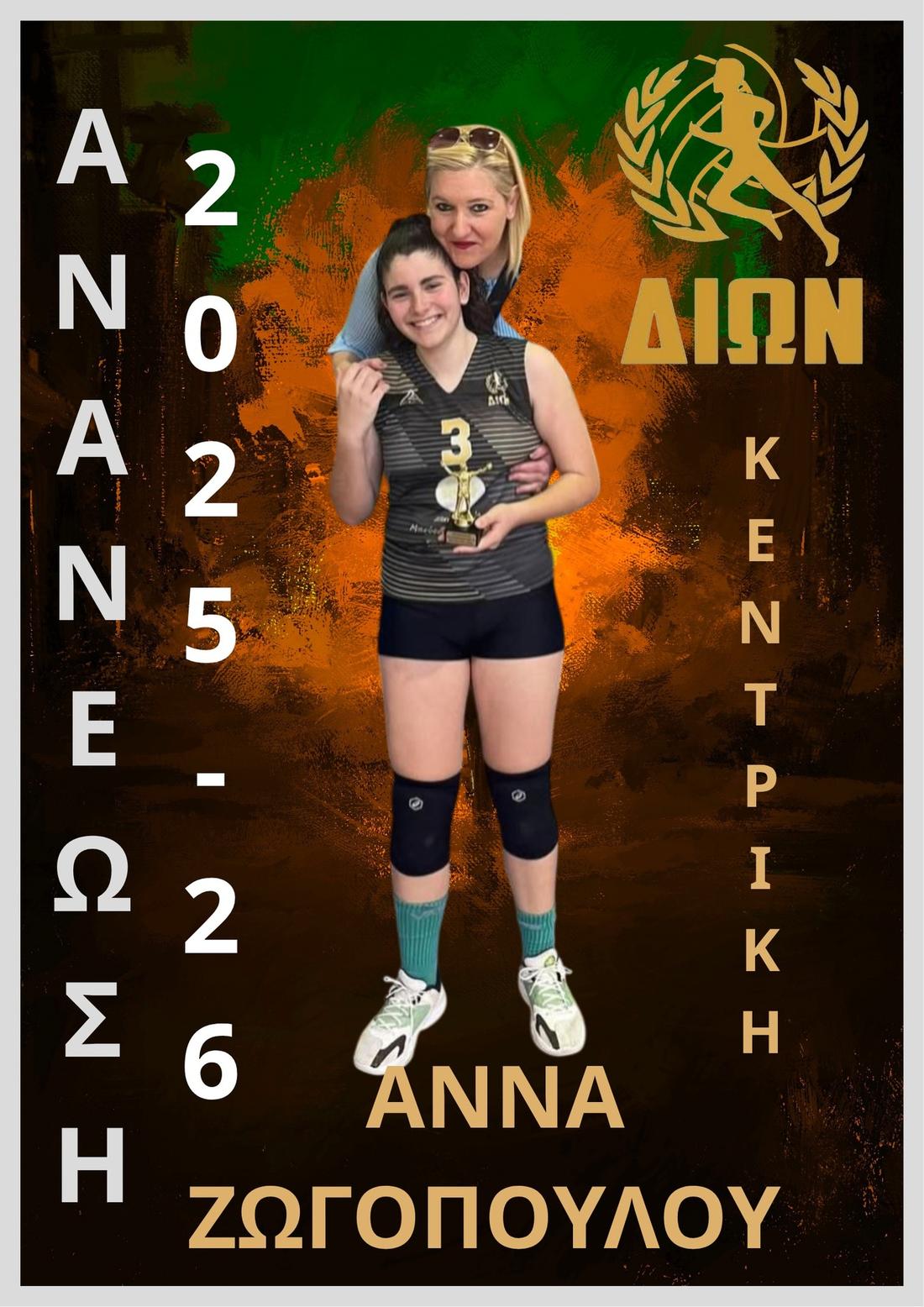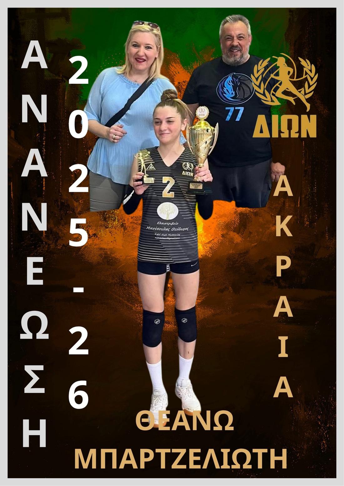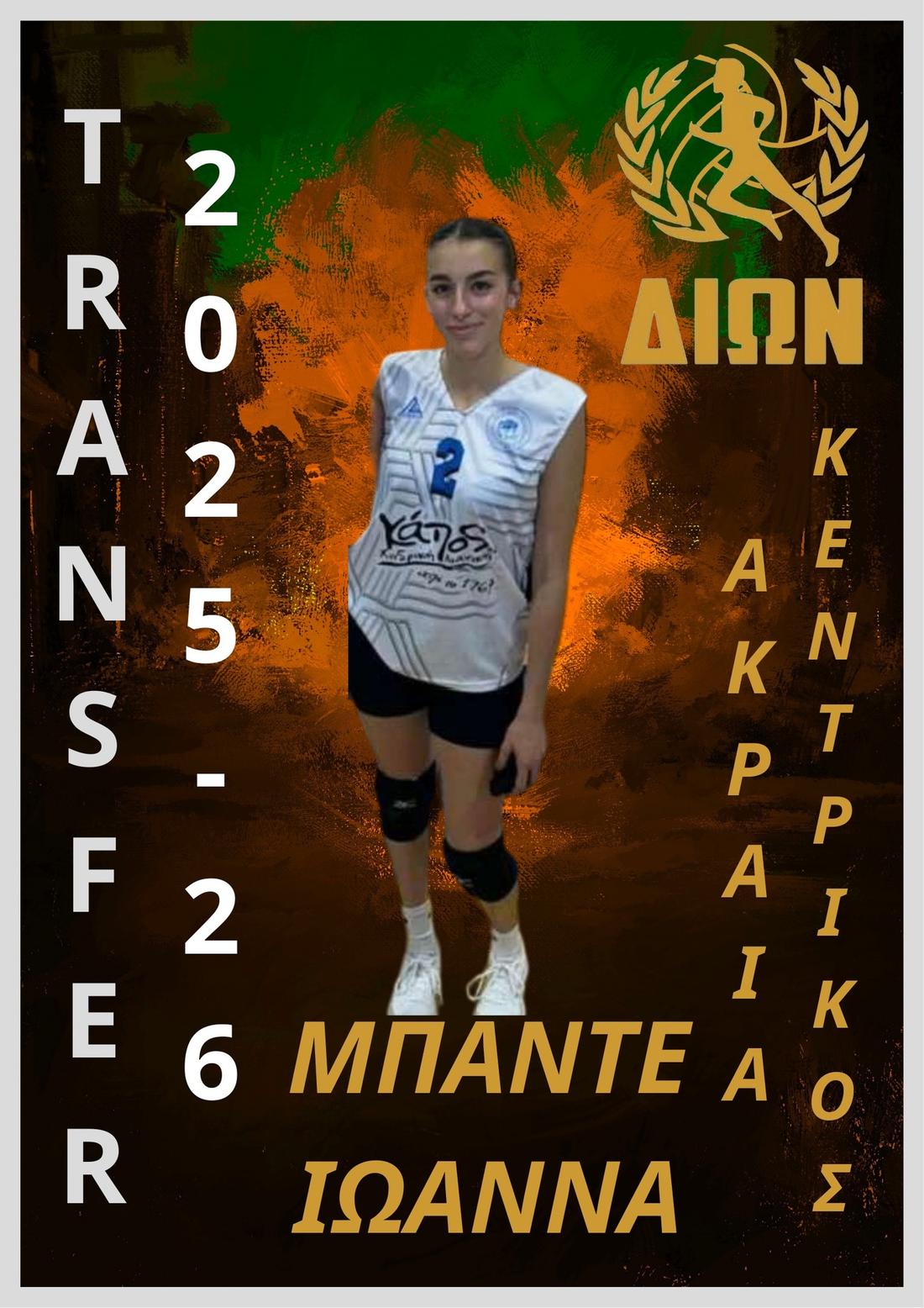 Ανάμεσα στις νέες αφίξεις, ξεχωρίζει η μεταγραφή της 22χρονης διαγωνίου Αθανασίας Τσιούμα (1,86 μ.), η οποία φέρνει στην Κυπαρισσία πολύτιμη εμπειρία και δυναμική παρουσία στο φιλέ. Η Τσιούμα έχει αγωνιστεί σε υψηλό επίπεδο με τις φανέλες των ΓΣ Λαμίας, ΑΟ Λαμίας, Ασκληπιού Τρικάλων, ΓΣ Αλμυρού Βόλου, ΑΟ Φοίνικα Σύρου, καθώς και της ιταλικής Dinamo CAB Molfetta. Στο ενεργητικό της μετρά συμμετοχές σε πρωταθλήματα Pre League, Α1, Α2, Β’ Εθνικής και Serie C Ιταλίας, γεγονός που μαρτυρά το εύρος της εμπειρίας της. Η παρουσία της αναμένεται να δώσει επιπλέον ποιότητα και σταθερότητα στην επίθεση του Δίωνα.