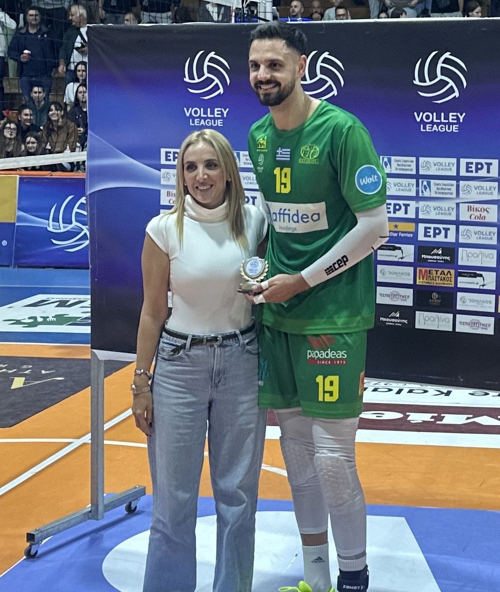 Ο Σέρβος ακραίος του Α.Ο.Καλαμάτα 80 Φιλίπ Κοβάσεβιτς αναδείχτηκε MVP της νίκη επί του Φλοίσβου με 3-0. Την βράβευση έκανε η Σμάρω Βερσαμάνη διευθύντρια πωλήσεων ομίλου Affidea μεγάλου χορηγού του Α.Ο.Καλαμάτα 80 Affidea.
