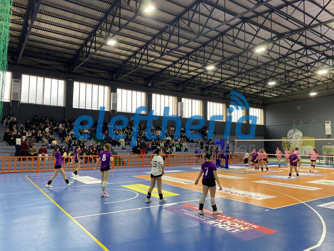 Λίγο αργότερα, το 1ο ΓΕΛ και το 2ο ΓΕΛ πρόσφεραν αντίστοιχα σπουδαίο θέαμα, με το πρώτο σετ να πηγαίνει πόντο-πόντο μέχρι το 25-23, ενώ σημαντικό ρόλο έπαιξε και η έντονη παρουσία δεκάδων συμμαθητών και συμμαθητριών στην κερκίδα, που με τις φωνές και την υποστήριξή τους έδωσαν επιπλέον ρυθμό και ώθηση στις δύο ομάδες. Το 1ο προηγήθηκε 17-13, το 2ο επέστρεψε στο 19-19 και η Τσουμελέα «υπέγραψε» το σετ με δύο καθοριστικά χτυπήματα. Στο δεύτερο σετ, το 1ο διατήρησε σταθερό προβάδισμα και έφτασε στο 25-15.