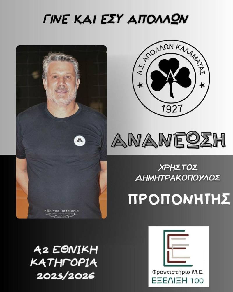 Συνεχίζει στον πάγκο του Απόλλωνα Καλαμάτας ο Δημητρακόπουλος